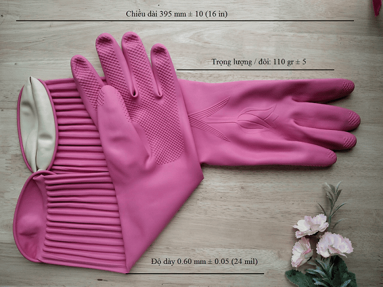 - Găng tay cao su dài tới giữa cánh tay, ôm sát cánh tay, tăng bảo vệ tay.